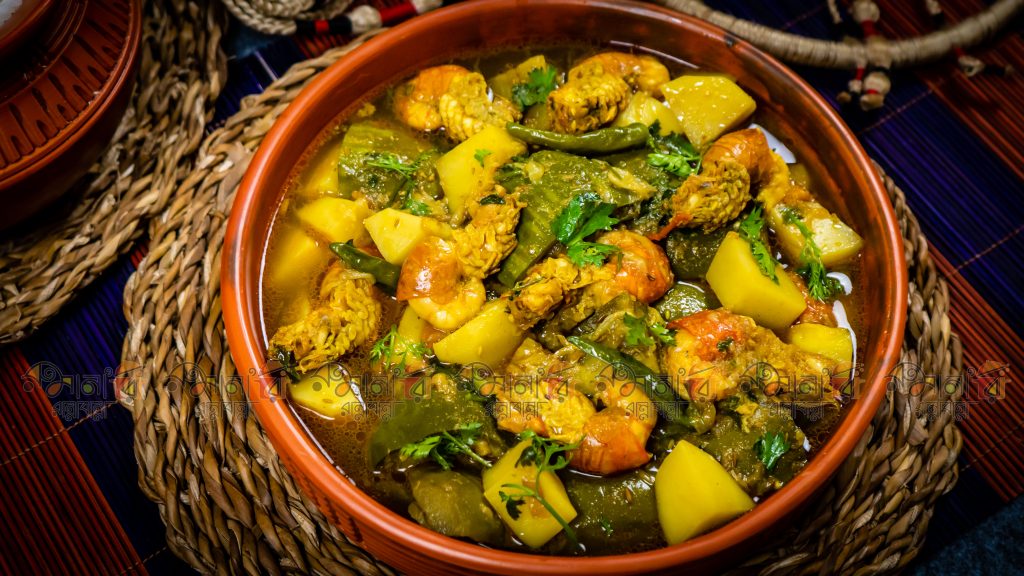 আলু বেগুনের তরকারি চিংড়ি মাছ দিয়ে